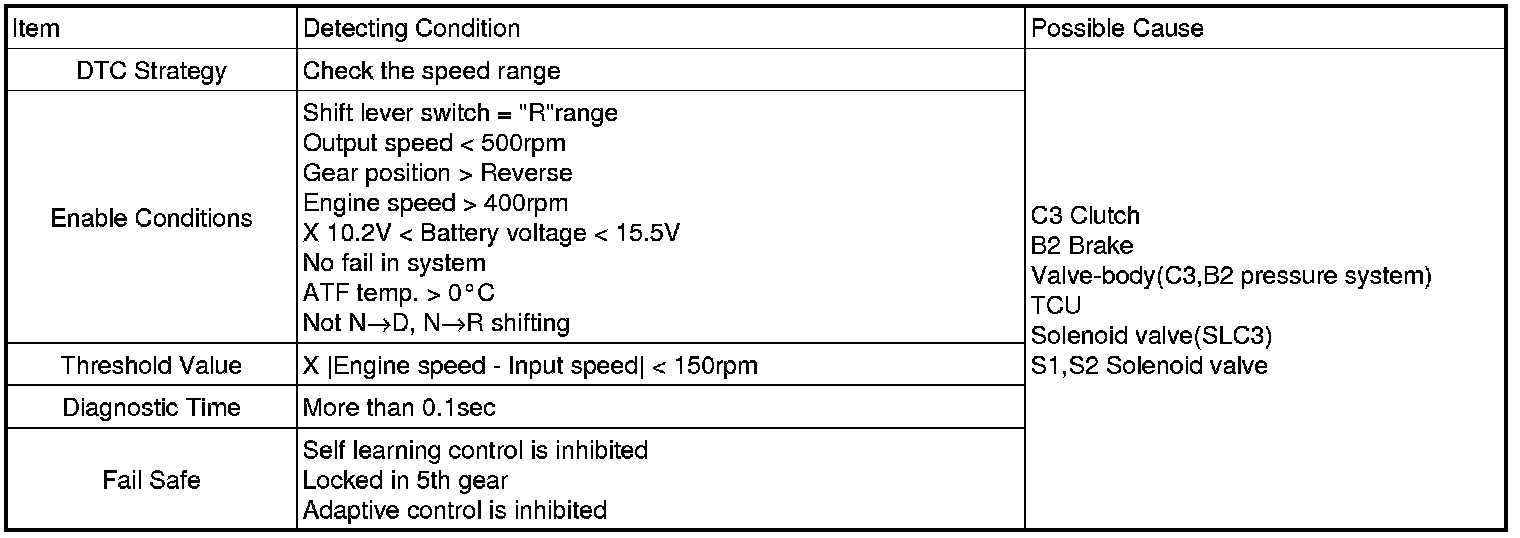 TCU monitors status of "SHIFT SOLENOID-VALVE C (SLC3) in order to maintain optimum gear shift.