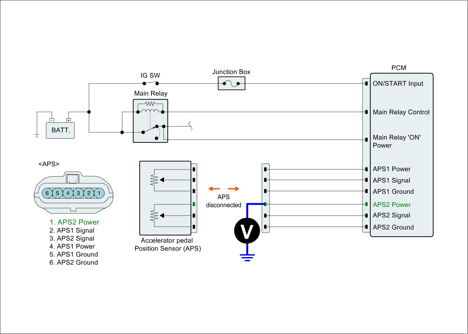 3. Measure voltage between APS 2 power terminal of APS harness connector and chassis ground.