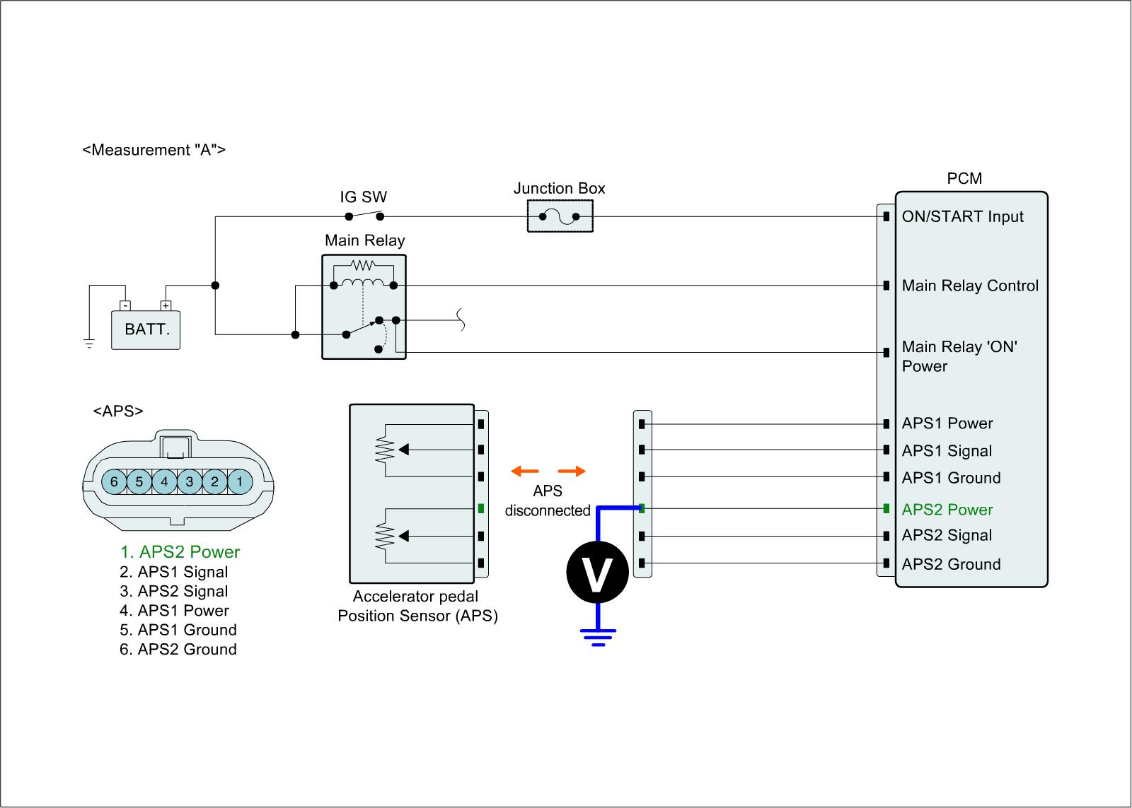 3. Measure voltage between APS 2 power terminal of APS harness connector and chassis ground. (Measurement "A")