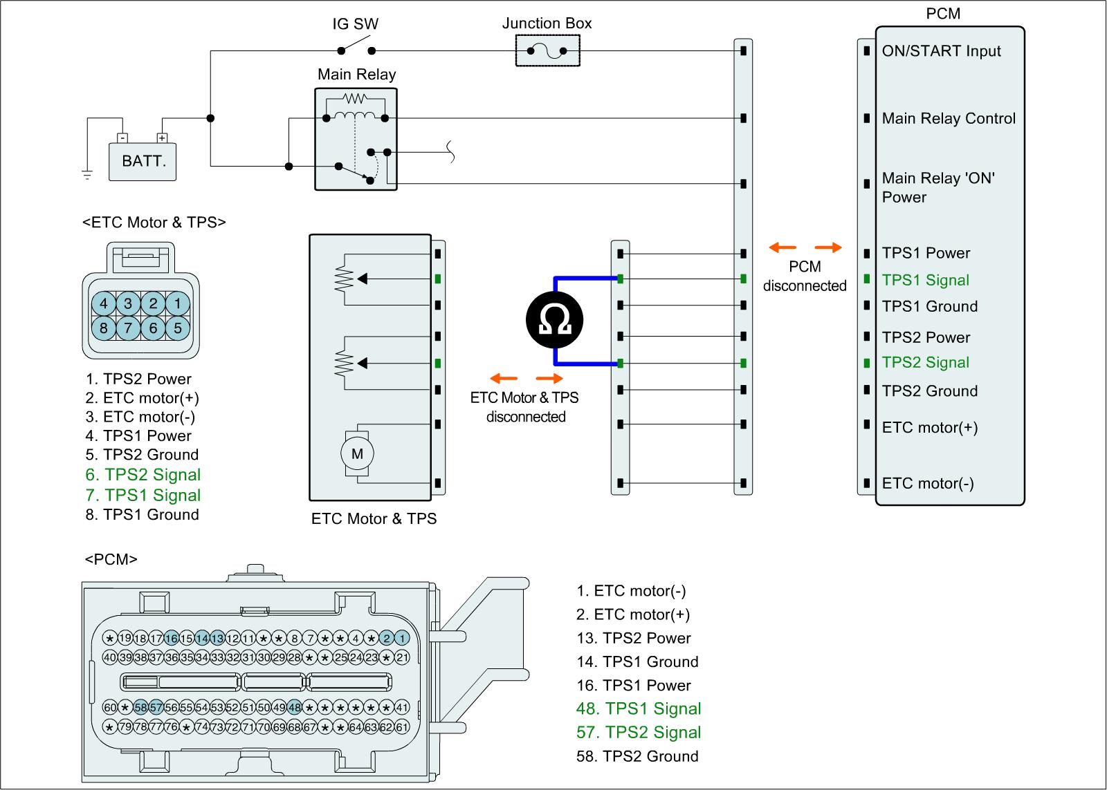 1. IG "OFF" and disconnect ETC Motor & TPS connector and PCM connector.