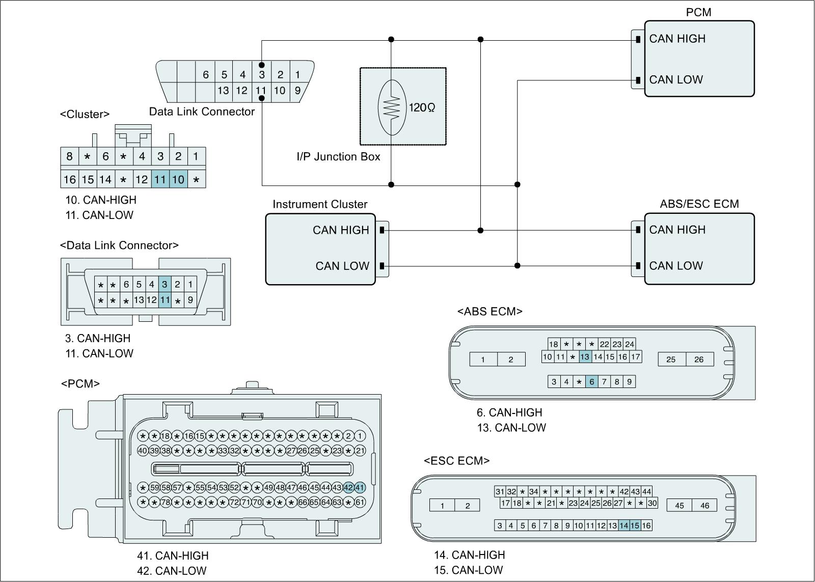 Several control units are applied to electronically controlled vehicles. These units perform each control with informations from various sensors. Thus, sharing signal information from sensors is needed, so CAN communication type whose communication speed is high and insensitive to electrical noise by spark generation is adopted to controlling power-train (PCM, TCM, ESP PCM, ABS PCM)