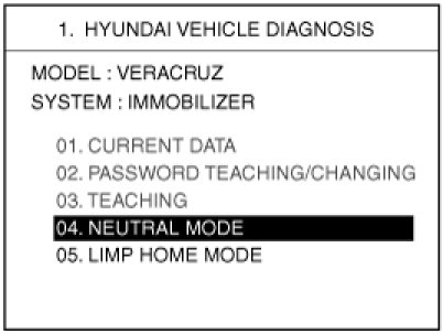 This function is for neutralizing the PCM(ECM) and Key. Ex) when lost key, Neutralize the PCM(ECM) then teach keys. can be set to the "neutral" status by a scanner.If wrong vehicle specific data have been sent to SMARTRA three times continuously or intermittently, the SMARTRA will reject the request to enter neutral mode for one hour. Disconnecting the battery or other manipulation cannot reduce this time. After connecting the battery the timer starts again for one hour.