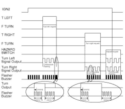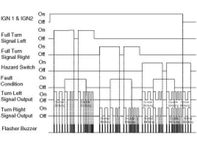 When the BCM detects the TURN LEFT SIGNAL or TURN RIGHT SIGNAL transition, then starts flasher buzzer outputs depend on transition.