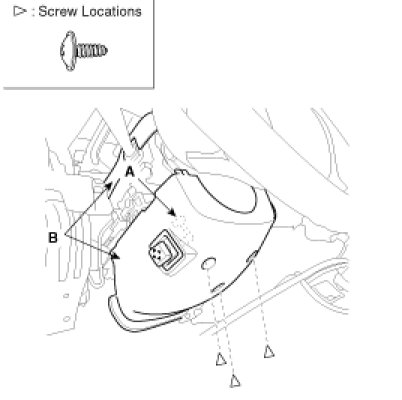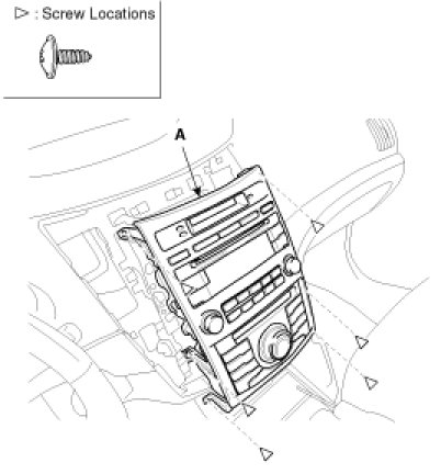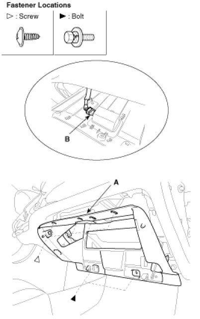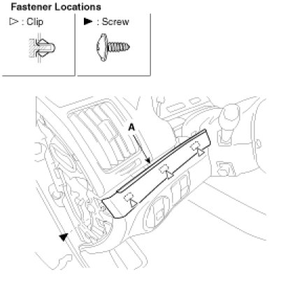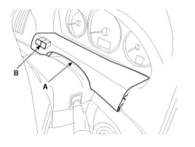 3. After loosening the crash pad lower panel mounting screws, then remove the lower panel (A).