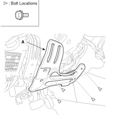 4. After loosening the mounting bolts, then remove the reinforcing panel (A).