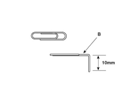2. Prepare a clip (B) and straighten its end portion as shown in the right photo.