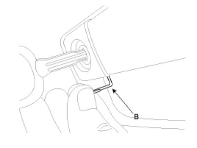 3. Insert the key into the key cylinder with the key in the "unlock" position and then insert the clip (B) into the service hole.