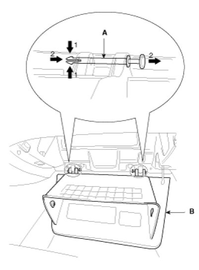 1. Disconnect the damper (B) from the glove box (A).