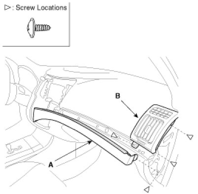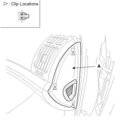 2. Remove the crash pad side garnish (A).