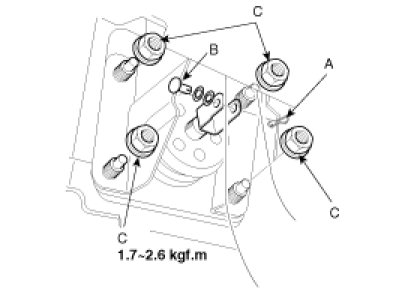 5. Remove the brake pedal member assembly mounting nuts (C) and then remove the brake pedal assembly.