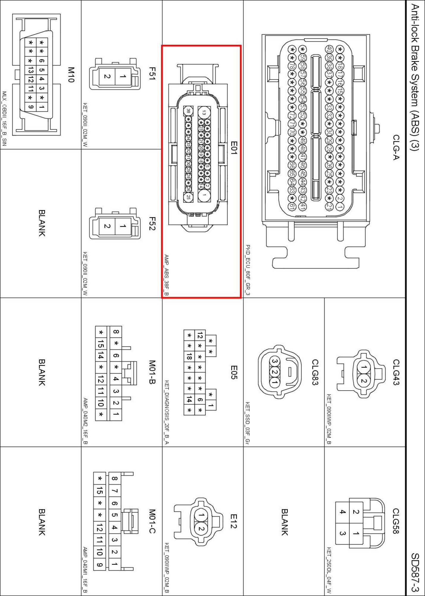 Anti-lock Brake System (ABS) (3) Connector Pin Outs: