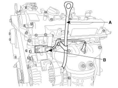 4. Disconnect the LH front oxygen sensor connector(B) from the bracket.