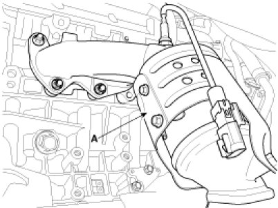 8. Disconnect the RH front and rear oxygen sensor connectors(A) from bracket.