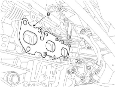 1. Install a new gasket(B) and the exhaust manifold(A).