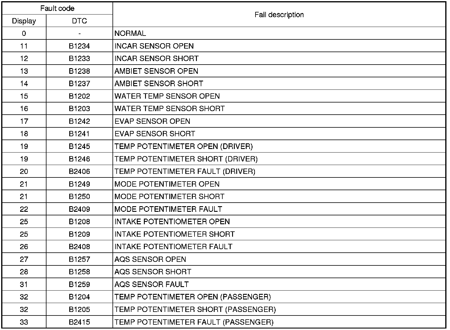 After the display panel flickers three times every 0.5 second, the corresponding fault code flickers on the setup temperature display panel every 0.5 second and will show two figures. Codes are displayed in numerical format