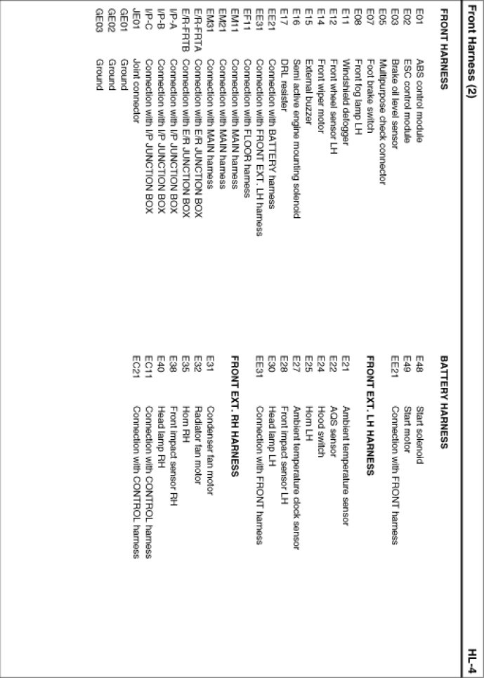 Front Harness Index: