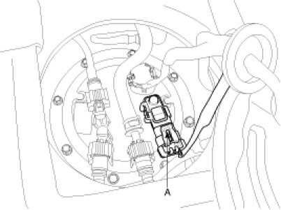 2. Disconnect the fuel tank pressure sensor connector (A).