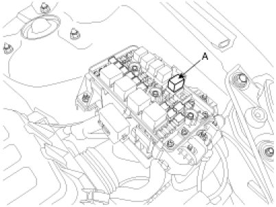 To prevent fuel being injected from injectors while the engine is being cranked, remove the fuel pump(A) relay from the fuse box.