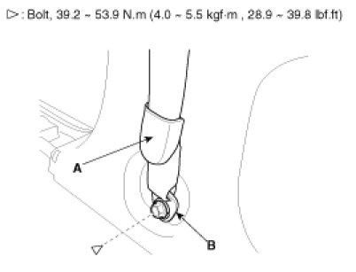 3. After raise the lower anchor cover (A), loosen the lower anchor (B) mounting bolt.