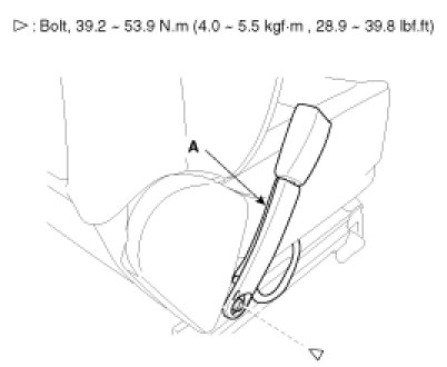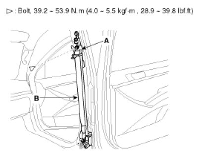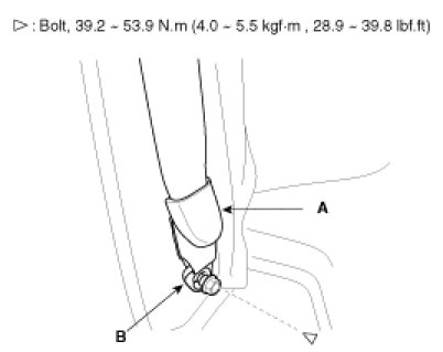 2. After raise the lower anchor cover (A), loosen the lower anchor (B) mounting bolt.