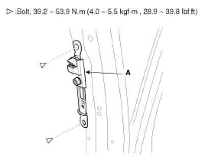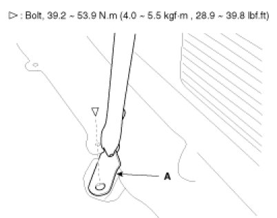 2. After loosening the mounting bolt, remove the lower anchor (A).