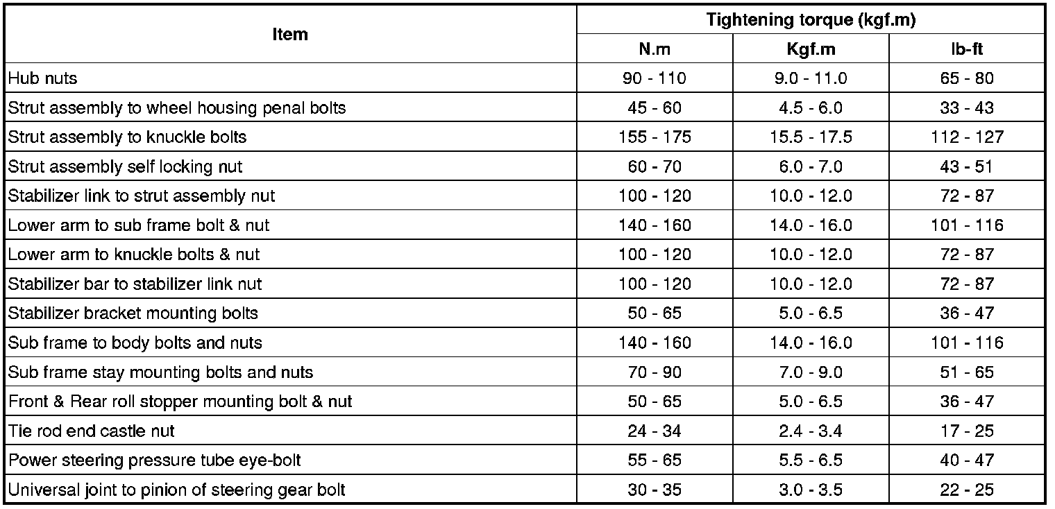 Tightening Torques