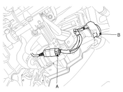 4. Remove the key warning switch and key illumination lamp (B) after disconnecting the 6P connector (A).