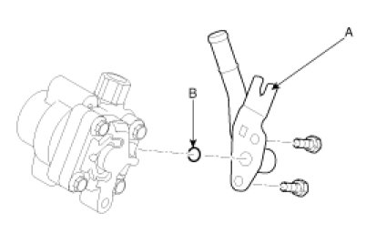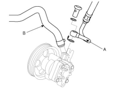 2. Disconnect the pressure tube (A) and return hose (B) from the power steering pump.