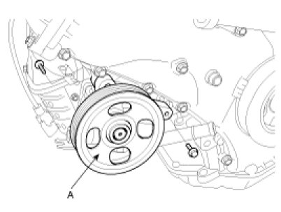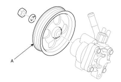 1. Remove the pump pulley (A) by loosening the lock nut.