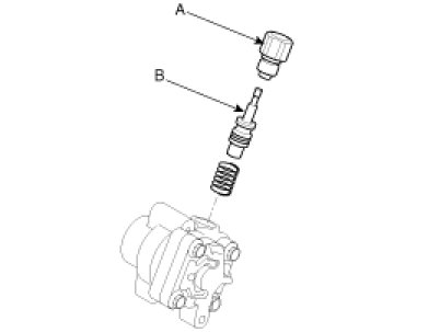 8. Insert the spring and flow control valve (B) into the pump body and then tighten the connector assembly (A).