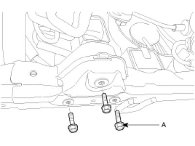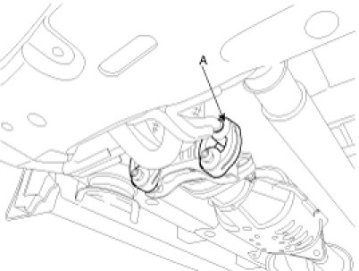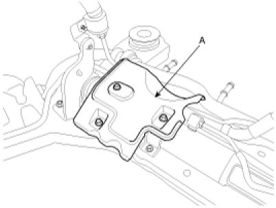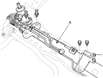 1. Install the steering gear box (A) to the sub-frame by tightening the mounting bolts.