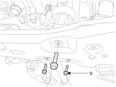 5. Install the front and rear roll stopper mounting bolts (A, B).