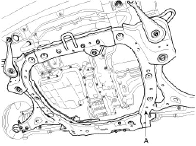 12. Remove the sub-frame (A) and stay by loosening mounting bolts and nuts.