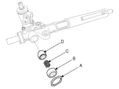 7. Insert the support yoke (D) and yoke spring (C) into the rack housing.