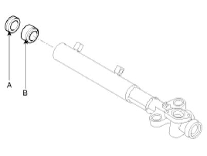 9. Remove rack stopper (A) and rack bush (B) from the rack housing.