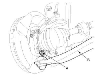 1. Install the front lower arm to the sub-frame and then tighten the bolts (A, B) and nuts.