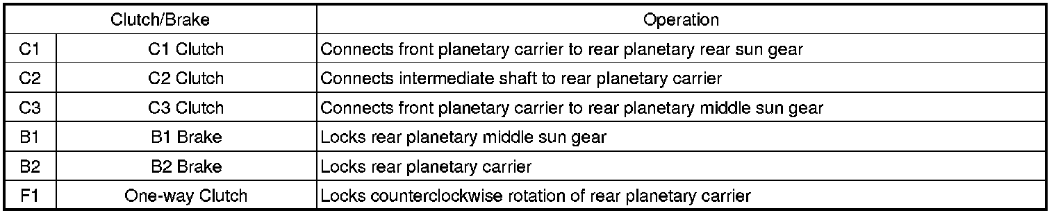 C1, F1 (counterclockwise rotation is locked), B2 (ON when engine brake is operating)