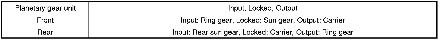 [because the rear planetary long pinion gear's rotation is subtracted from the rear planetary carrier revolution, the rear planetary ring gear revolution is slower than those of the rear planetary carrier]