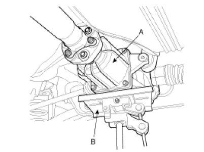 6. After loosen the differential mounting bolts (A), and remove the differential (B).