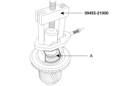 2. Using the SST(09455-21000), remove the other taper roller bearing(A) from the hypoid gear shaft assembly.