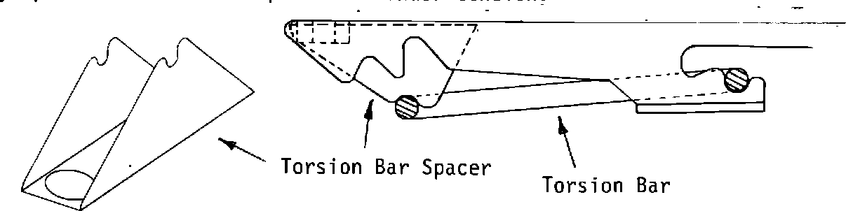 Using a large prybar or screwdriver, pry the fixed end of the torsion bar out of the hinge piece and slip the spacer into position. Make sure that the spacer is properly positioned over the weld nut on the hinge and that the torsion bar is located in the notch provided for it. This step must be performed for each torsion bar.