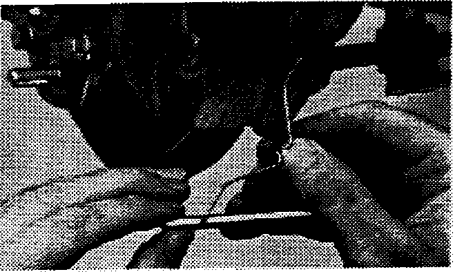13. Make sure that the K-spring is hooked over the inner pad tab and that the M-clip ear goes through the outer pad locating hole as shown.