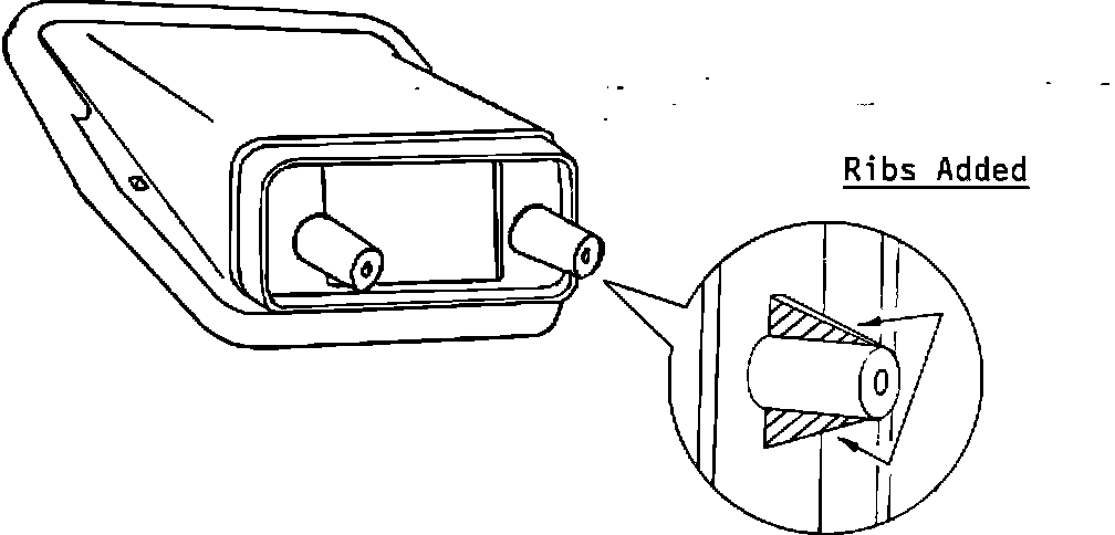 To improve retention of the center mounted stop lamp on 5 door models, the attachment screw bosses have been strengthened as illustrated below.