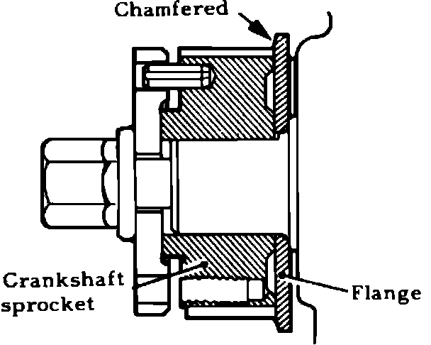 8. Remove crankshaft sprocket retaining bolt, then the sprocket and flange.