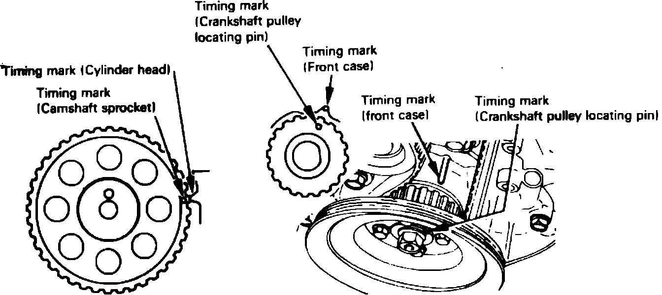 Fig. 4 Camshaft and crankshaft sprocket timing marks: