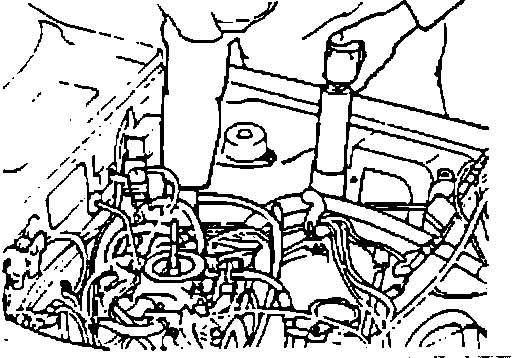 34. Connect a timing light. Loosen the distributor mounting nut and set the ignition timing to 5 BTDC.