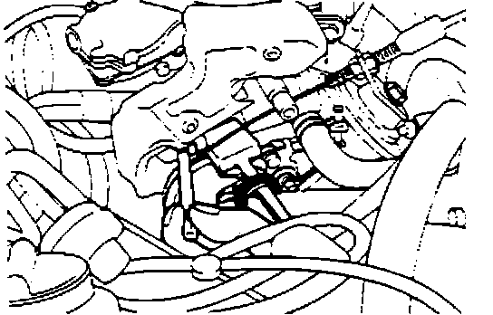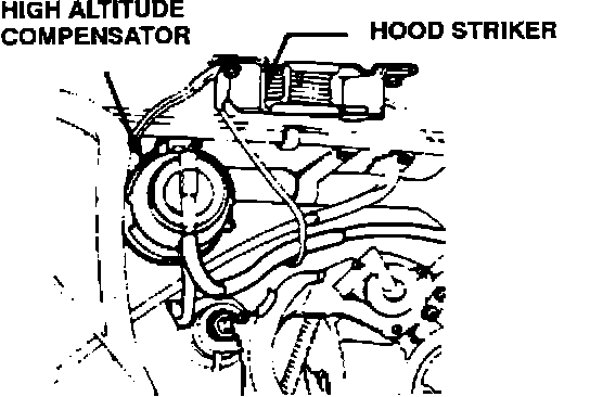 16. Re-install the coolant hose on the carburetor and the high altitude compensator on the fire- wall clip.