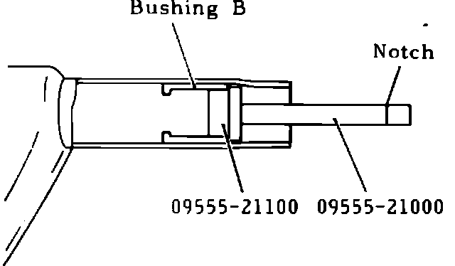 2. Using tools 09555-21100 and 09555-21000 or equivalents, drive bushings ``B'' and ``A'' in that order into left suspension arm. When installing bushing ``B'', drive bushing inward until notch on tool 09555-21000 reaches end of arm, Fig. 2.