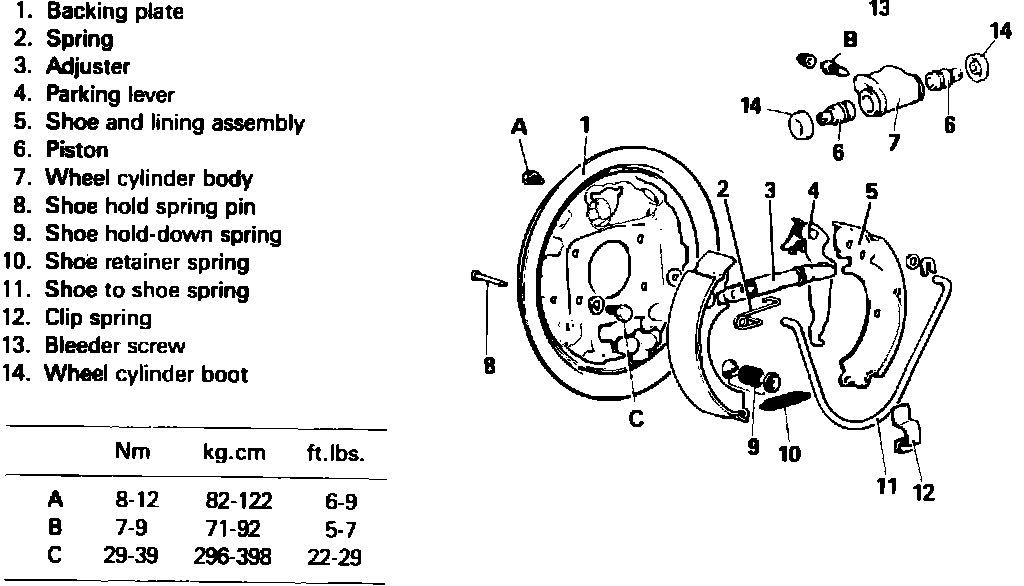 2. Check wheel cylinder for fluid leakage. Repair or replace cylinder as necessary.