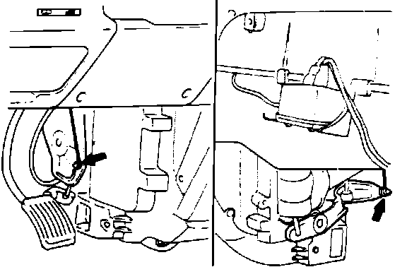 8. Disconnect control cable and lever from RH heater case.